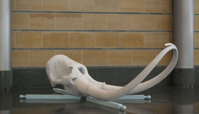 In repurposing traditional building materials, artist Matthew Flegle (Columbus, OH) constructs objects that emanate from architecture and suggest narrative. Plaster, metal mesh, drywall, lumber, concrete, and insulating foam are all transformed yet remain recognizable as raw materials. No Shelter features three new sculptures by Flegle (including a large-scale mastodon skull) that combine his interest in vernacular American structures and figurative subjects with continuing investigations into complex human conditions.