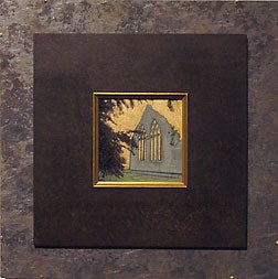 Diane Kruer: "Monk's Fishing Hut, Cong, County Mayo, Ireland," 2005, hand-painted digital photograph, gold leaf, matted in rusted steel, mounted on slate, 12" x 12"