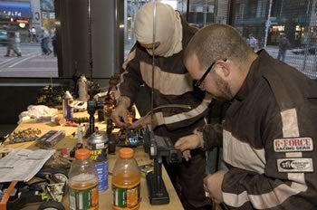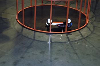 Nick De Pirro and Ian Williams are both graduates of The Ohio State University master’s program in sculpture where they previously collaborated on large-scale sculptures that incorporated a performance component inspired by popular culture. In a new venture, De Pirro and Williams have reunited to create Circumambulator, a large-scale fabricated conical steel sculpture, measuring nearly 13 ½ feet tall and 20 feet in diameter, which doubles as a racetrack for radio-controlled model cars. Taking full advantage of the public interaction and glass-box exposure of the Weston Art Gallery’s street-level exhibition space, the artists will stage live demonstrations during the opening reception and in a return engagement on Monday, October 17 as part of Enjoy the Arts’ 20/20 Festival. In addition to the monumental sculpture, the installation will include a garage “pit” area to showcase video and house the model cars when not in use. During the course of the exhibition, Circumambulator will be available to model race car aficionados to test the limits of their driving skills.
