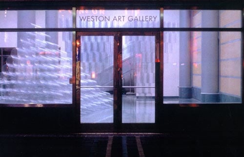 In the upper level of the Weston Art Gallery, the artist Edward Mayer of Delmar, New York, has constructed Enfilade, an intriguing site-specific sculpture that employs industrial fencing material in a simple and direct modular stacking system resulting in a piece that both echoes and transforms its architectural setting.