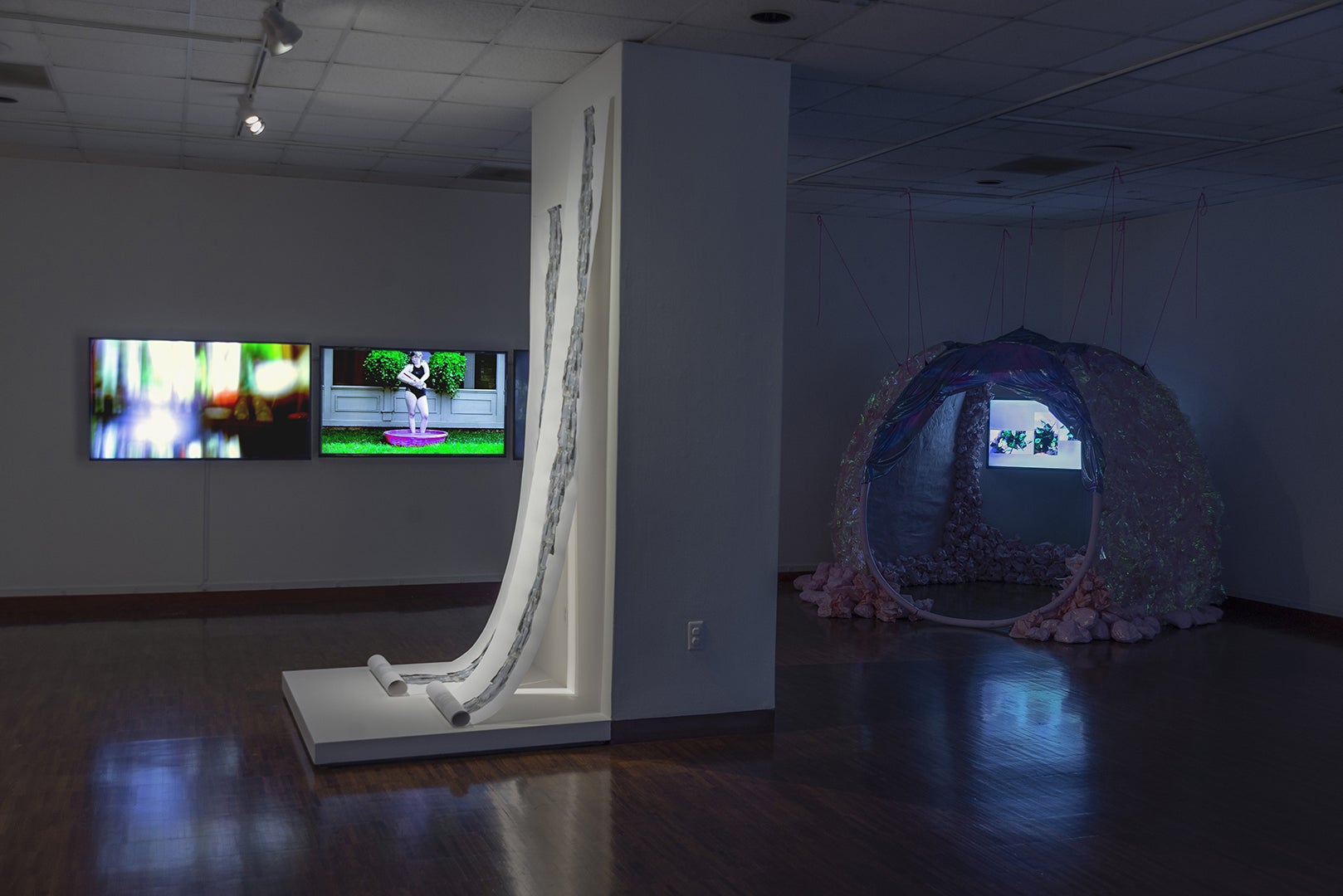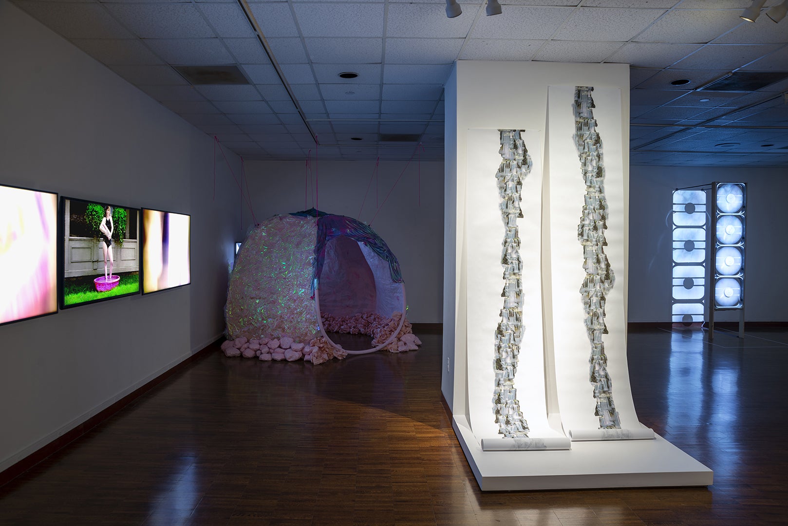 Entryway installation view - aquarium sculptures by (L-R) Loraine Wible, Lauren Hoying Post, and Katie Hubbell.jpg